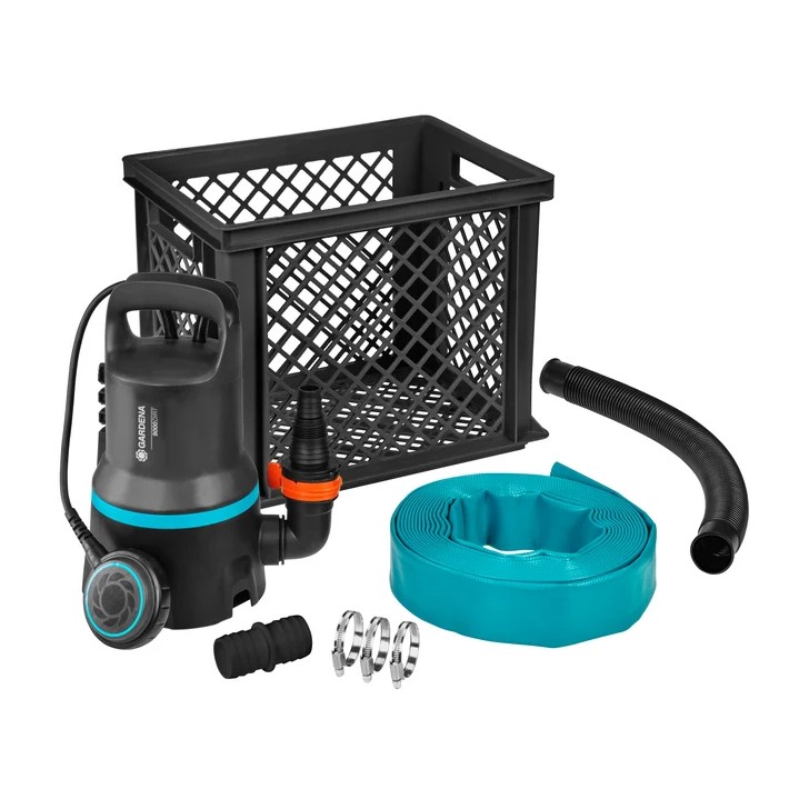 Το Σετ Αποστράγγισης Gardena 9000 είναι ένας εξαιρετικός βοηθός στην αποστράγγιση και την άντληση νερού μετά από πλημμύρα. Η αντλία αποστράγγισης ακάθαρτου νερού 9000 χρησιμοποιείται εάν το υπόγειο είναι πλημμυρισμένο ή η μολυσμένη λίμνη του κήπου πρέπει να αντληθεί. Το συμπεριλαμβανόμενο κουτί από ανακυκλωμένο υλικό χρησιμεύει ως πρακτικό προ-φίλτρο κατά τη χρήση σε πλημμύρα. Αυτό προστατεύει την αντλία από σώματα, τα οποία θα την έφραζαν γρήγορα.