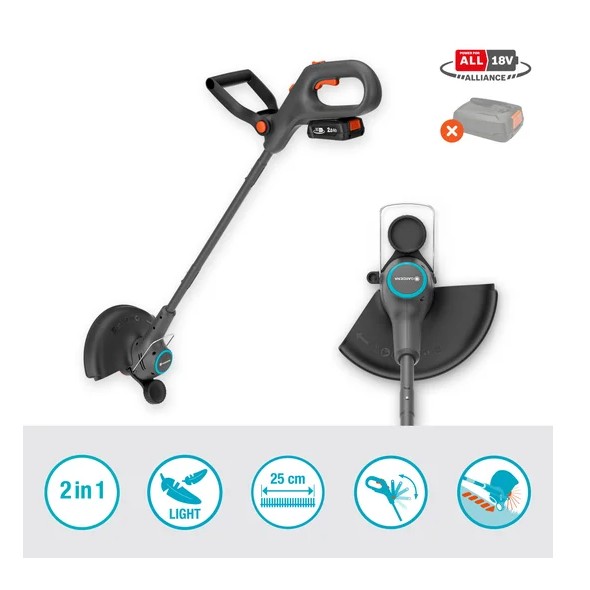 Ελαφρύ και ευέλικτο, αυτό το ασύρματο εργαλείο μεταφέρεται εύκολα και άνετα, ακόμη και σε μεγάλους κήπους. Παρά το μικρό βάρος, διαθέτει αρκετή ισχύ κοπής για να αντιμετωπίσει γκαζόν κάθε σχήματος και μεγέθους, ενώ ο ρυθμιζόμενος προφυλακτήρας προστατεύει τα λουλούδια, τα δέντρα και τους θάμνους.