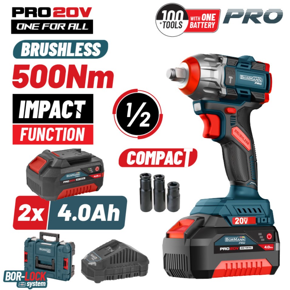 Μπουλονόκλειδο Μπαταρίας Λιθίου Brushless BormannPro BBP5422X44CA Με 2 Μπαταρίες Λιθίου 4Ah Φορτιστή Και Βαλίτσα
